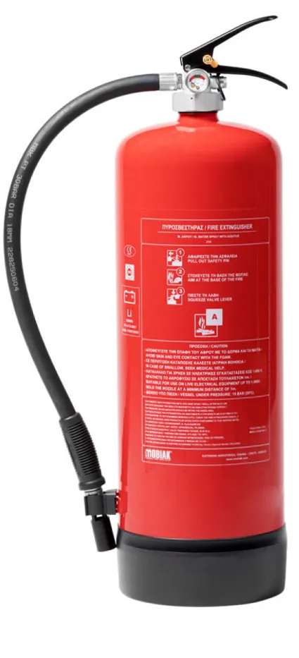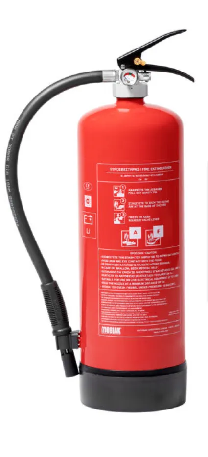 6 litrelik Hidrojel Yangın Söndürücü, İç Plastik Katmanlı ve Dış Dişli Tek Dikişli Hazne, Basınç Göstergesi Emniyet Tahliye Vanası ve Basınç Göstergesi Geri Dönüşsüz Vana ile birlikte.